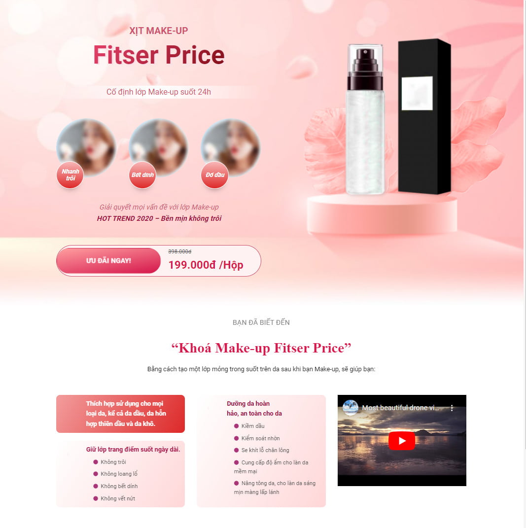 Theme wordpress landing page xịt makup